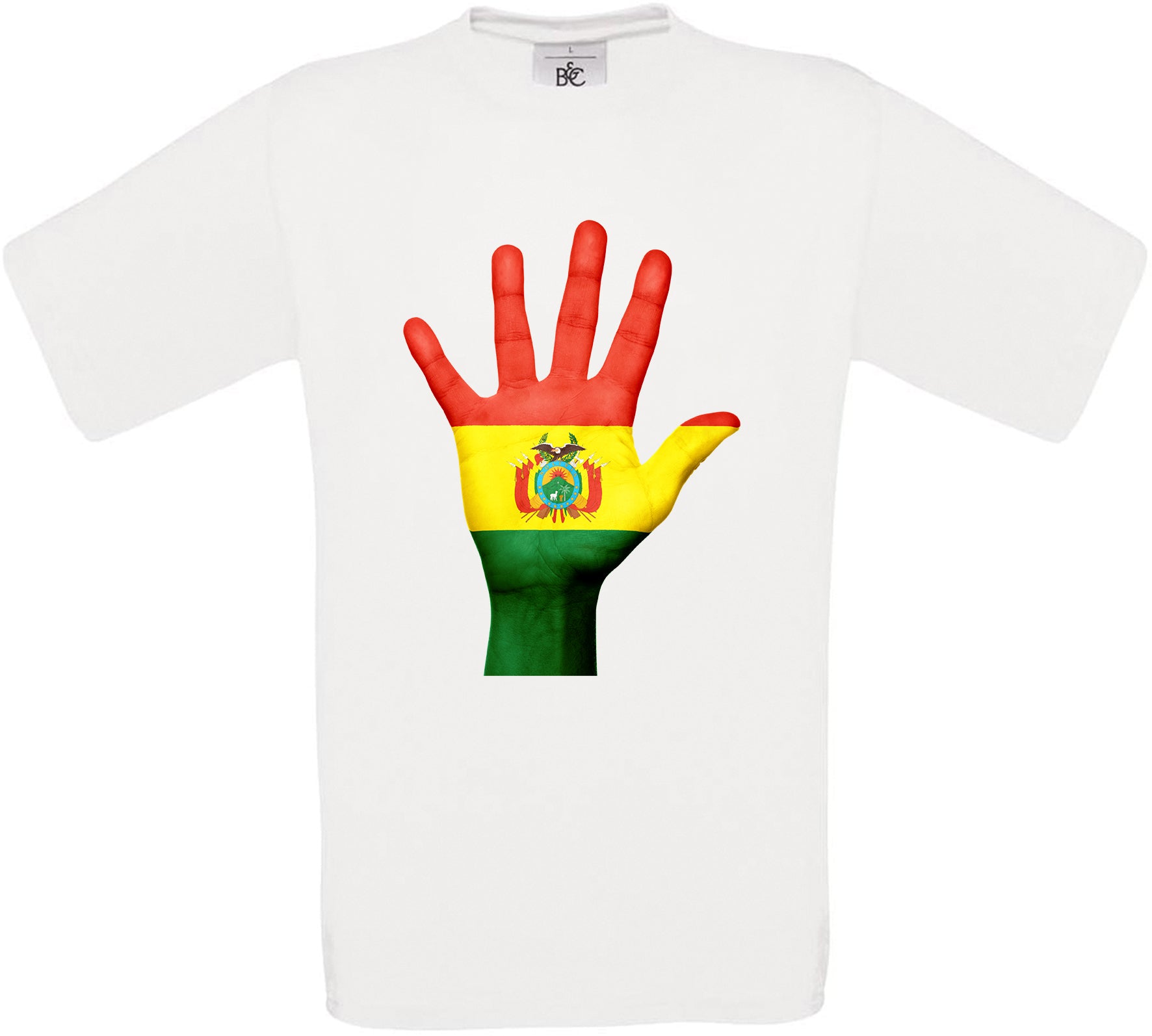 This t-shirt features Bolivia Hand Flag