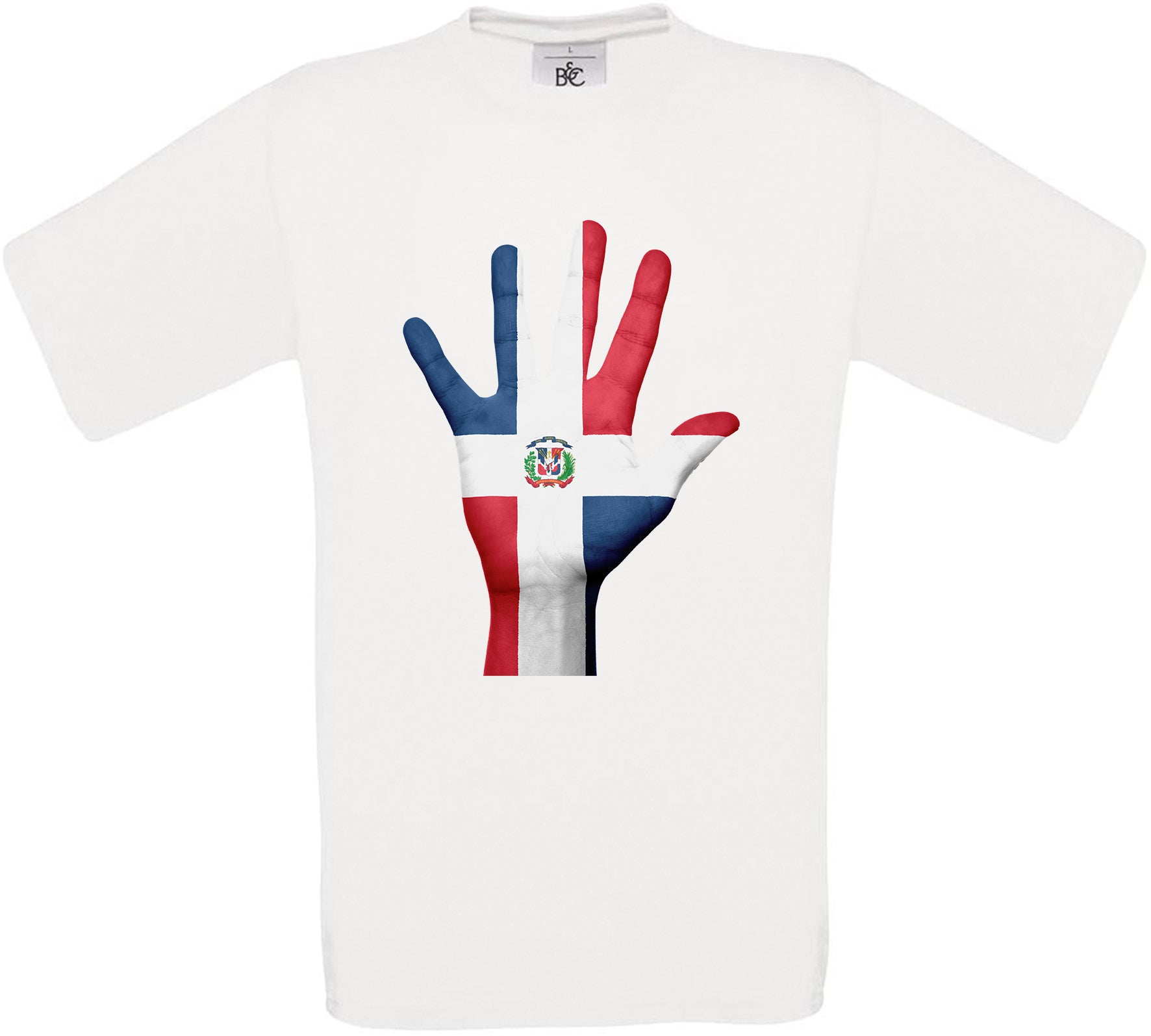 This t-shirt features Dominican Republic Hand Flag