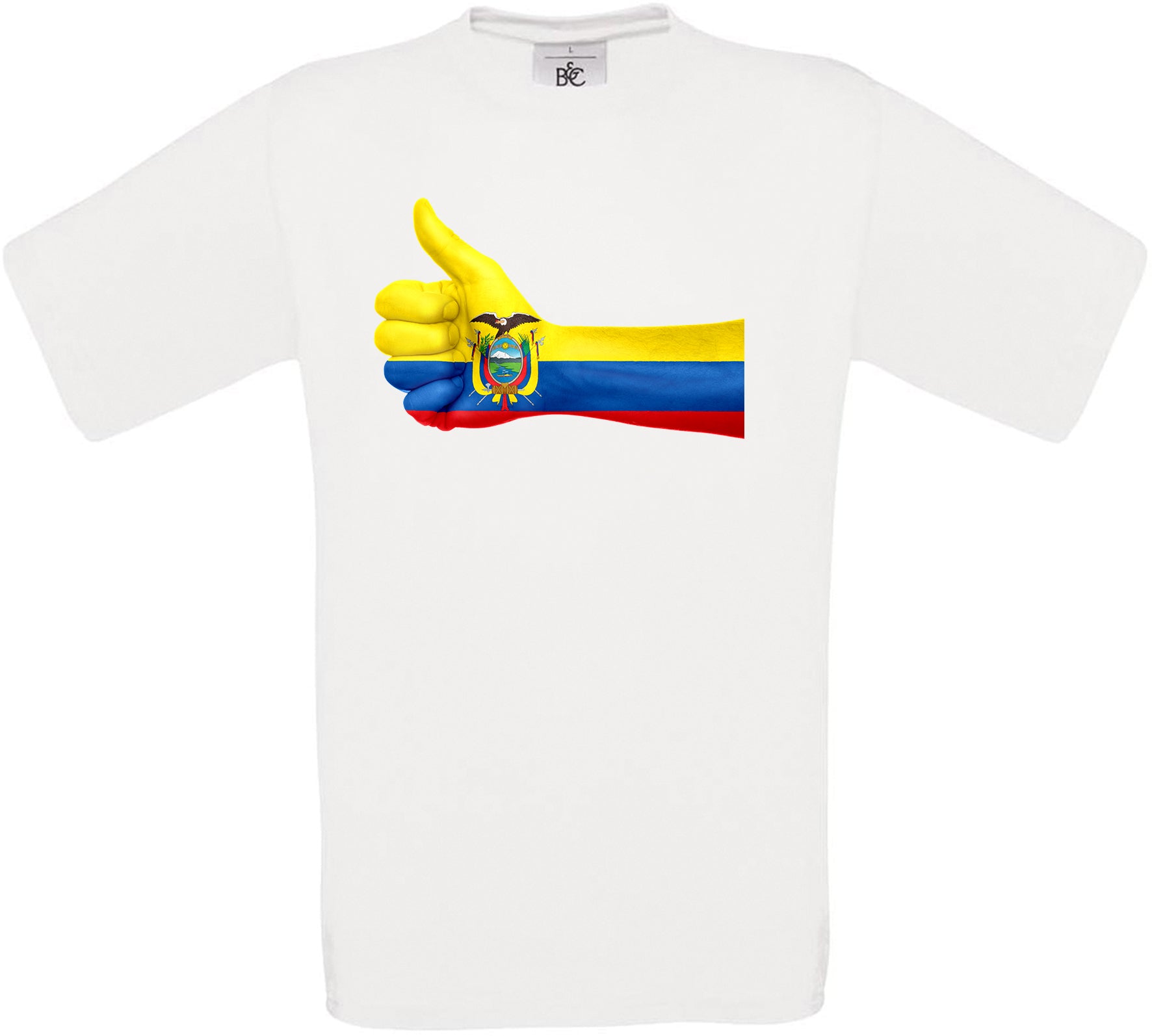 This t-shirt features Ecuador Thumbs Up Flag