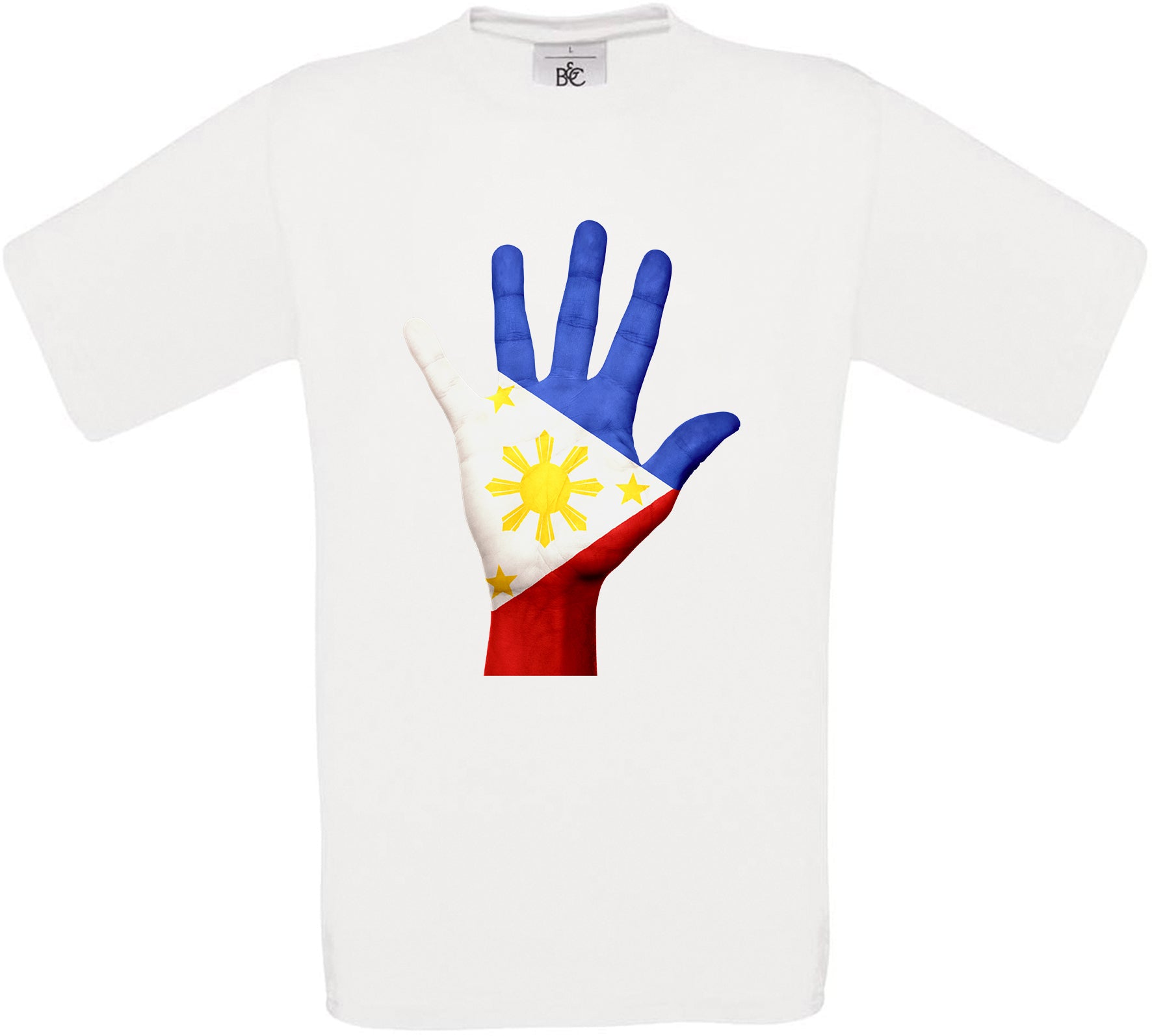 This t-shirt features Philippines Hand Flag