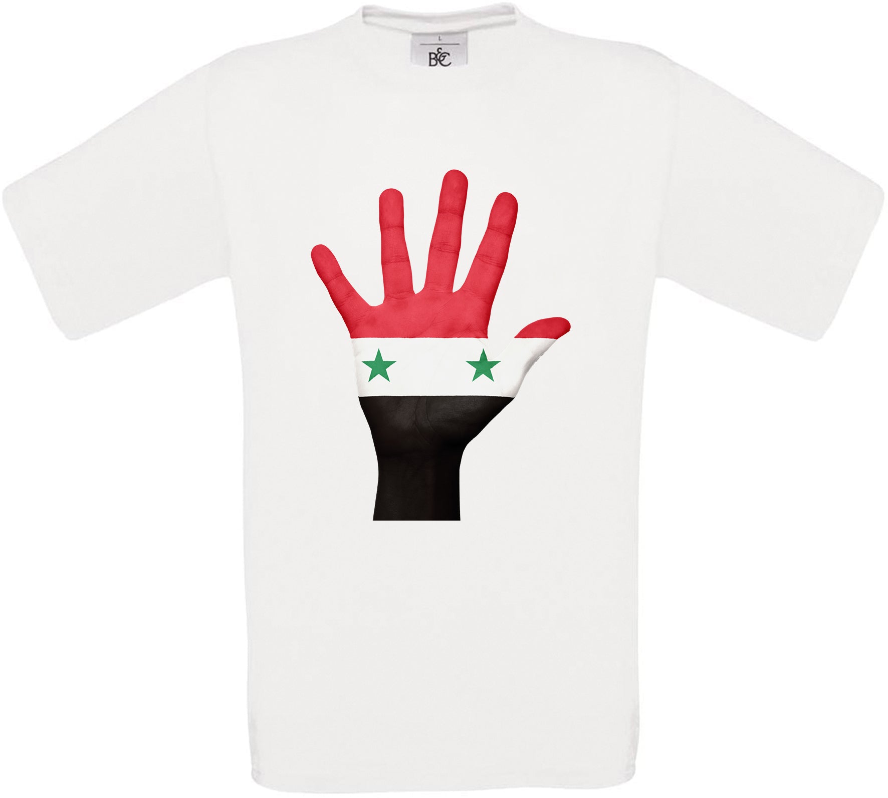 This t-shirt features Syria Hand Flag