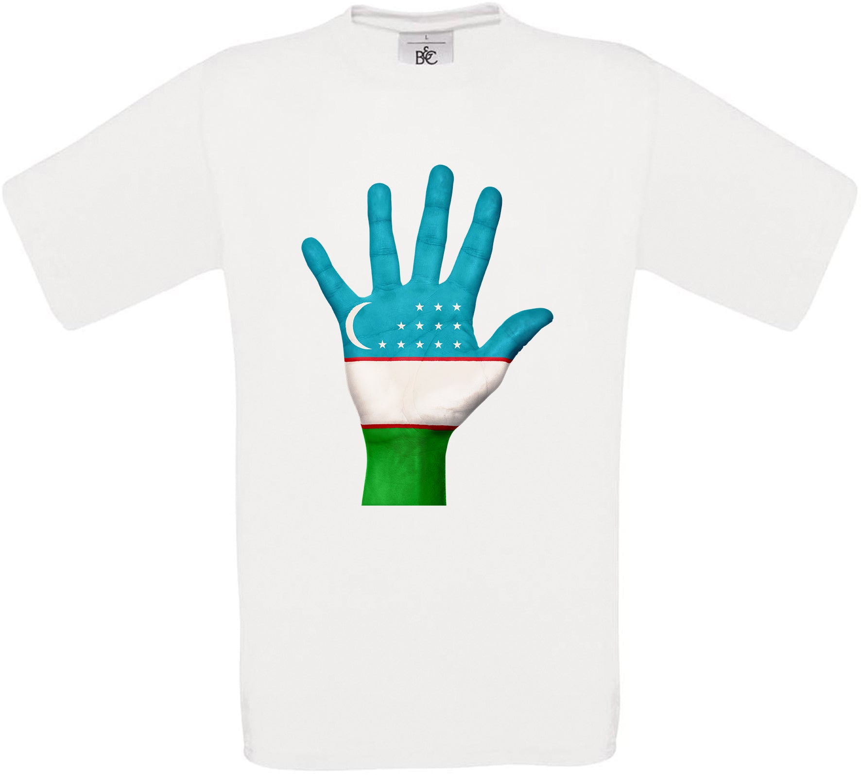 Uzbekistan Hand Flag Crew Neck T-Shirt