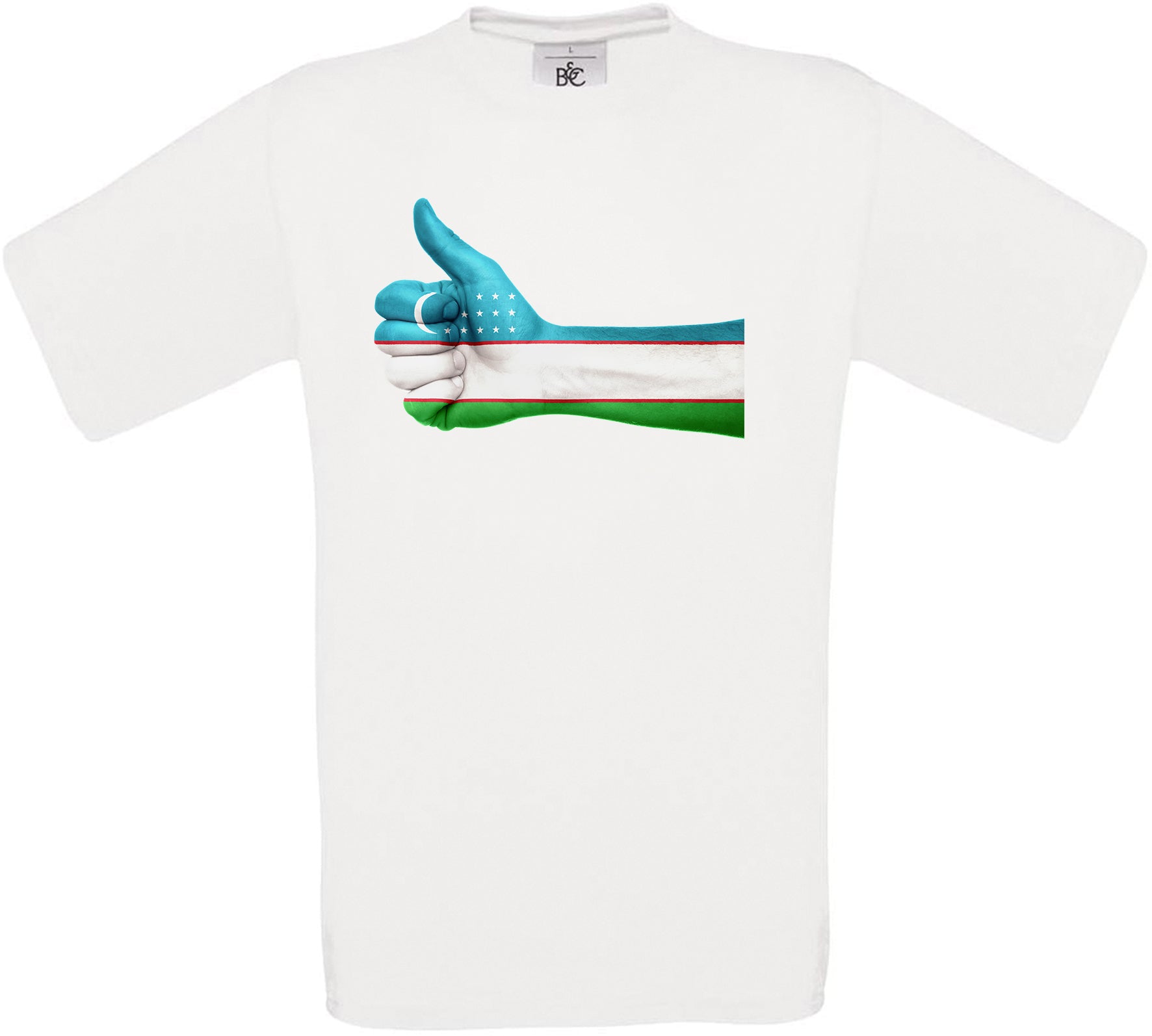 This t-shirt features Uzbekistan Thumbs Up Flag