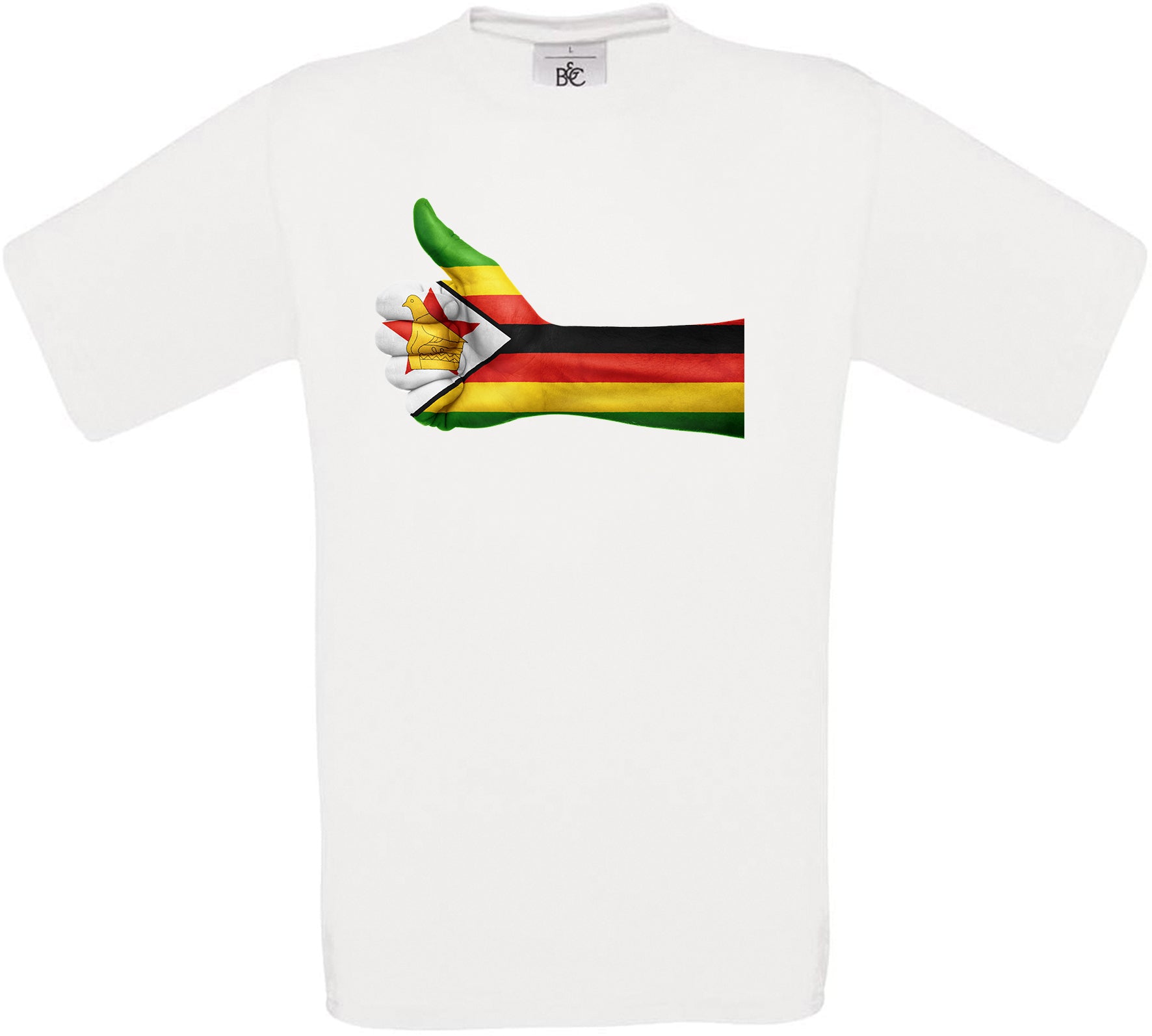 This t-shirt features Zimbabwe Thumbs Up Flag